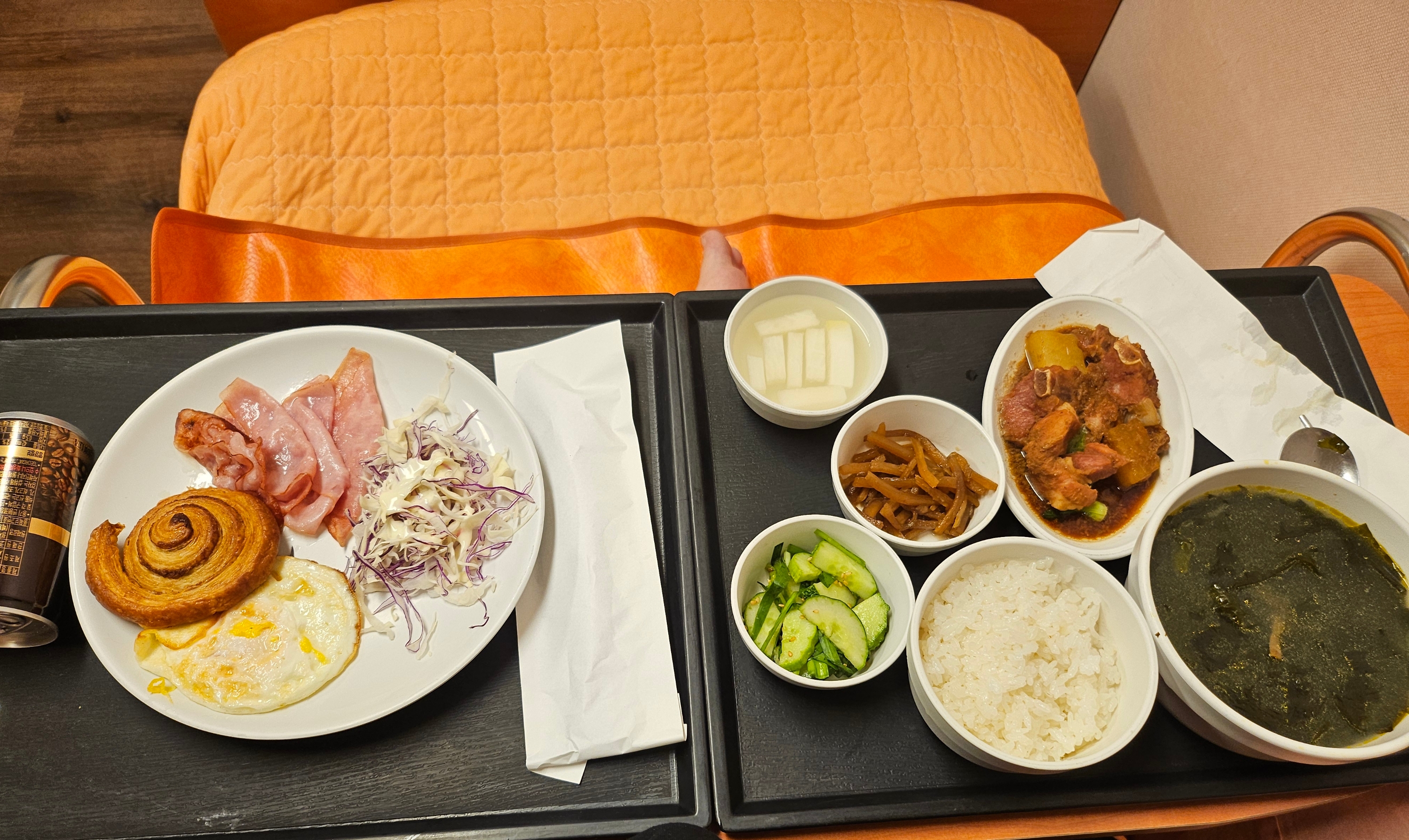 첫날에 보호자식사를 빵으로 드릴지 밥으로 드릴지 물어보시길래 남편이 빵을 선택했는데 그날만 빵인지 알았더니 쭉 아침이 빵으로 나와서 간호사선생님께 식사로 바꿔달라 요청함 ㅋ